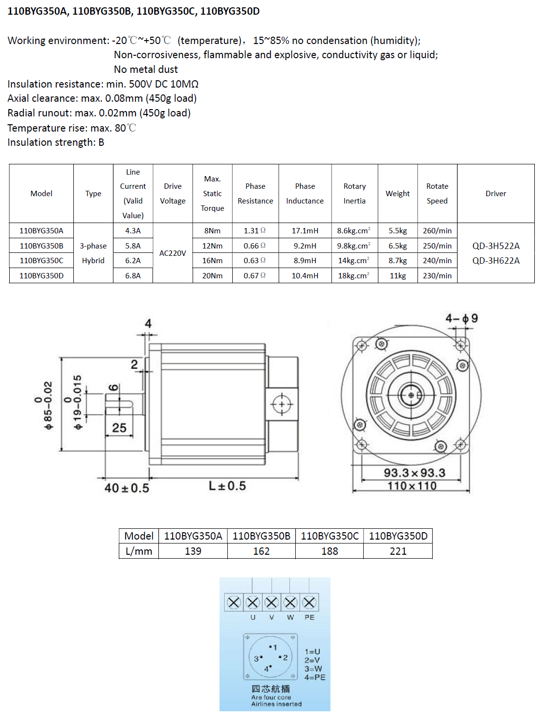 110BYG350 series 3-phase stepper motor
