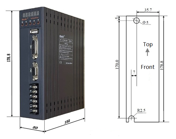 Protection:The servo drive itself is not protected; it must be installed in a well-sealedelectrical enclosure that prevents ingress of corrosive or flammable gases,conductive objects, metallic dust, oil mist, or liquids.